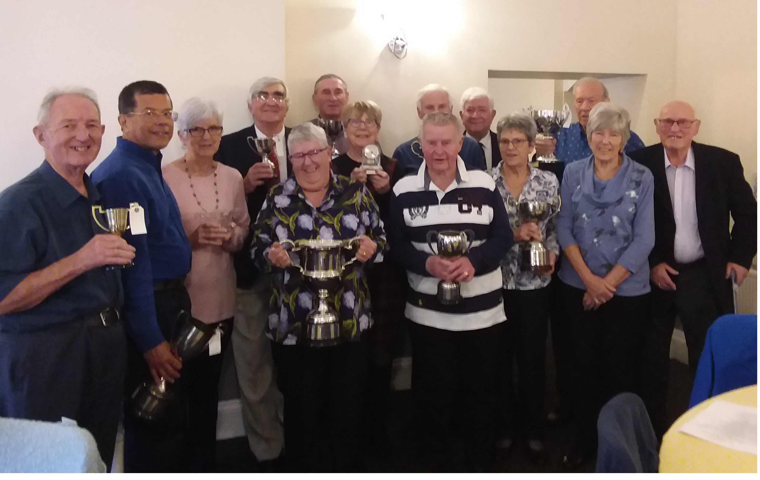Prattens Bowls Club recently held a presentation lunch at the Old Down Inn where all concerned enjoyed a good meal and winners (and runners-up) received their prizes. The club sponsors (Sam Chivers Estate Agents) were to have presented the prizes but unfortunately were unable to attend due to illness so the club President did the honours instead.